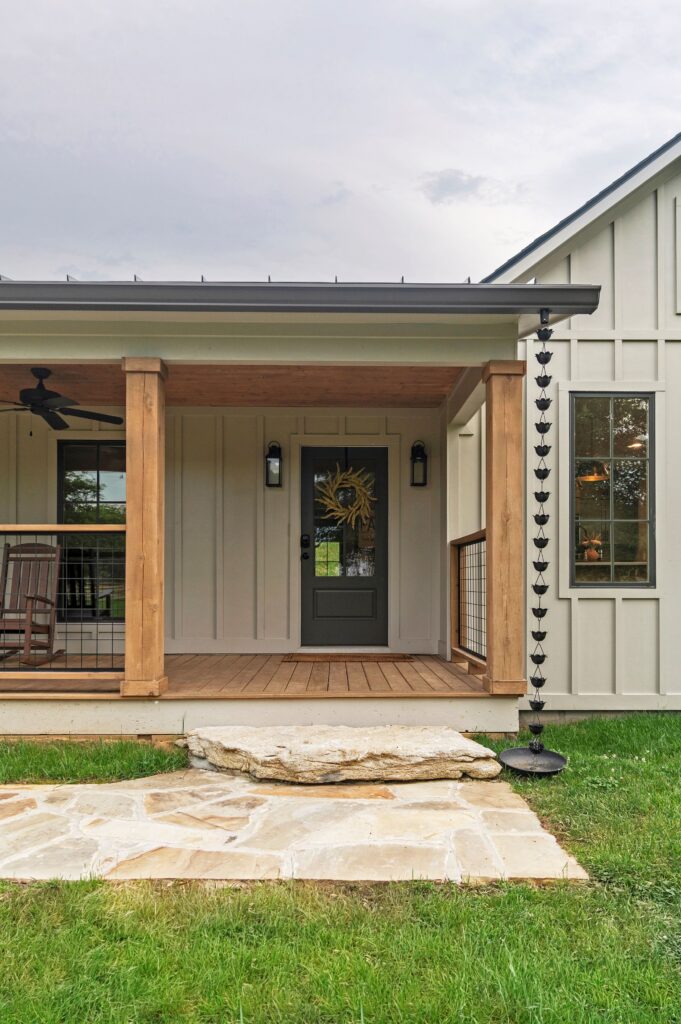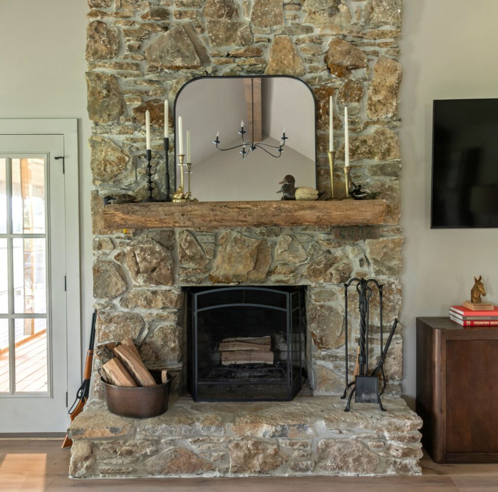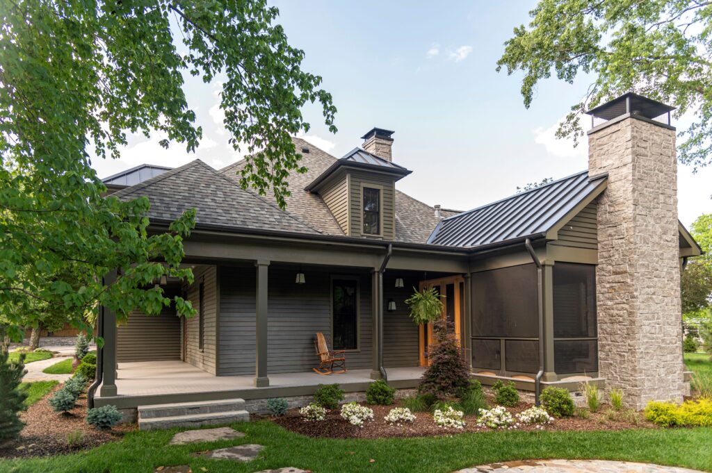 Last was reimagining the exterior and its relationship to the rest of the property. There was an existing porch, but its size and connection to the interior were limited, thus restricting its use. To fit the homeowner’s lifestyle and desire to have more outdoor space, the porch became the main focus of the design. The addition extended the existing porch around the side of the home, providing more areas to sit and take in the crisp Tennessee air rolling off the hills nearby. A screen porch was added adjacent to the dining room with a vaulted ceiling and a stone wood-burning fireplace.