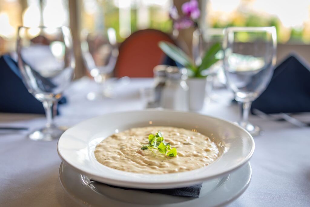 The Mere Bulles menu features refined, Southern-inspired cuisine made with high-quality ingredients and artful presentation. Popular favorites include the salmon & corn cakes, the tender braised short rib, and their signature she-crab bisque. Whether you’re dining with clients or enjoying a romantic night out, every meal at Mere Bulles is crafted to impress.