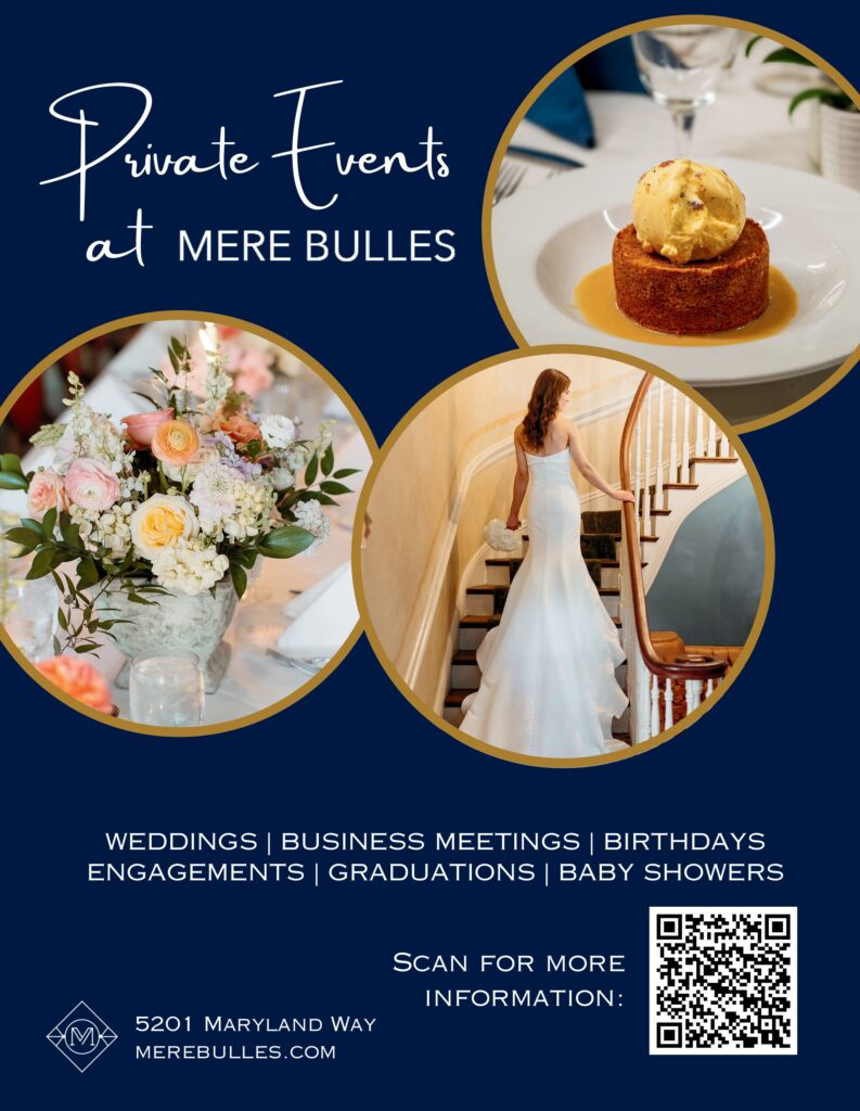 Tucked away in the heart of Maryland Farms in Brentwood, Tennessee, Mere Bulles is more than just a restaurant—it’s a cherished local tradition. Housed in the original Maryland Manor, a stately Southern mansion that once anchored a working horse farm, Mere Bulles offers guests a one-of-a-kind dining experience steeped in history and hospitality. This very home is the namesake of the surrounding Maryland Farms area, making it a landmark as well as a destination.