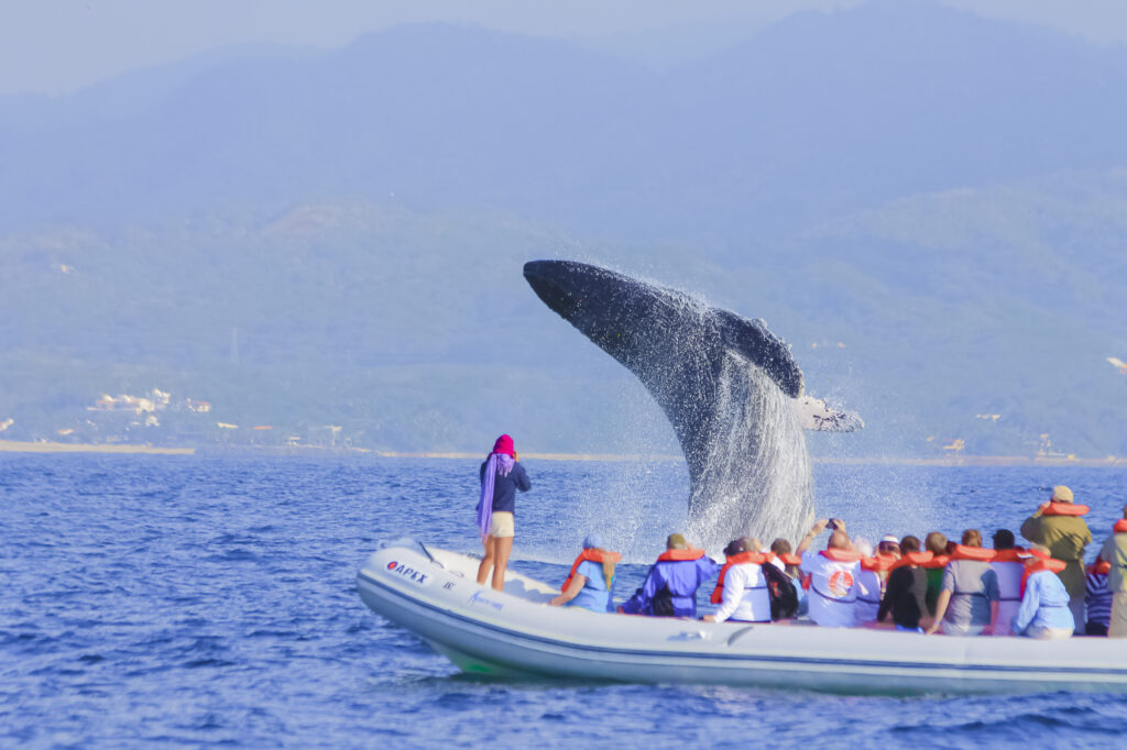 Massive Banderas Bay, boasting 65 miles of coastline and 500 square miles of water, is the winter home for humpback whales that come south to birth babies and mate for more. Perhaps 700 of the massive mammals, up to 40 tons and 60 feet long, spout, roll, and sometimes leap from the water. It is common to see them from the Malecón. Whale watching excursions are popular, and anglers on charter trips often see whales. Also in the bay are dolphins, sea turtles, rays, shrimp, tuna, mahi, and pulpo (octopus), which is excellent in tacos or grilled as an entrée.