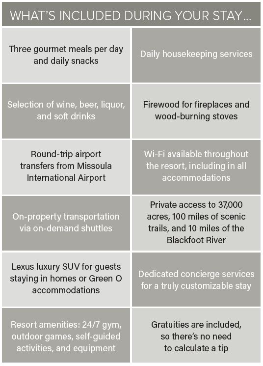 For families, there are 28 private luxury homes, each offering spacious accommodation with a refined blend of rustic elegance and Montana’s natural beauty. These homes are ideal for gathering with friends and family or an intimate retreat for two. Whether you choose a historic residence or a riverside lodge, unwind in style with complete privacy with Montana’s breathtaking wilderness just outside your door.